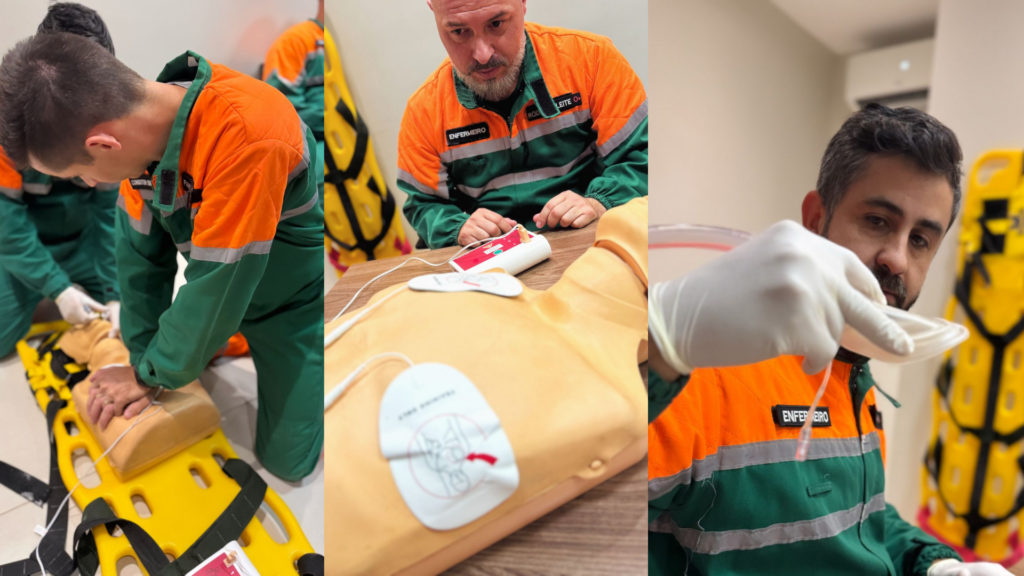 A equipe do SOS Unimed Vale do Sinos participou de mais um momento de capacitação técnica, com foco na atualização em Ressuscitação Cardiopulmonar (RCP) e na prática de passagem da máscara laríngea — dois procedimentos fundamentais para a atuação em situações de emergência.